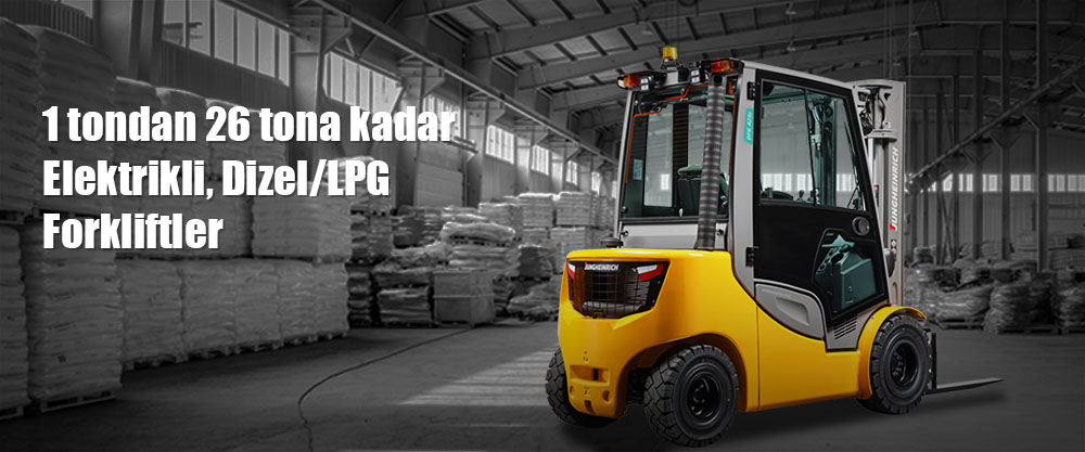 O zaman Jungheinrich denge ağırlıklı forkliftlerimizle tanışın: küçük ve kompakt olan akülü forklift ve enerji tasarruflu ama yüksek performanslı Dizel/LPG forklift ile 1.000 ile 9.000kg arası taşıma kapasitesine sahip forkliftlerimiz, hem depo hem de açık alan kullanımı