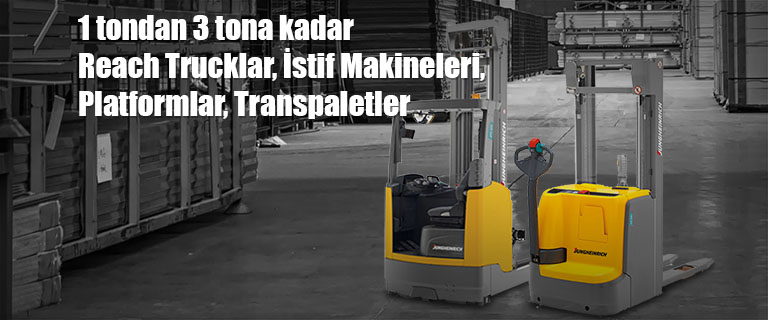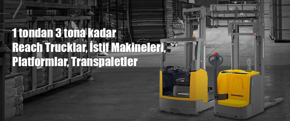 Yüksek raf istifleyicilerimiz, dar alan sipariş toplayıcı_ larımız, reach trucklarımız ve transpaletlerimizle  size gereksinimlerinize uygun ve ekonomik çözümler sunuyoruz.